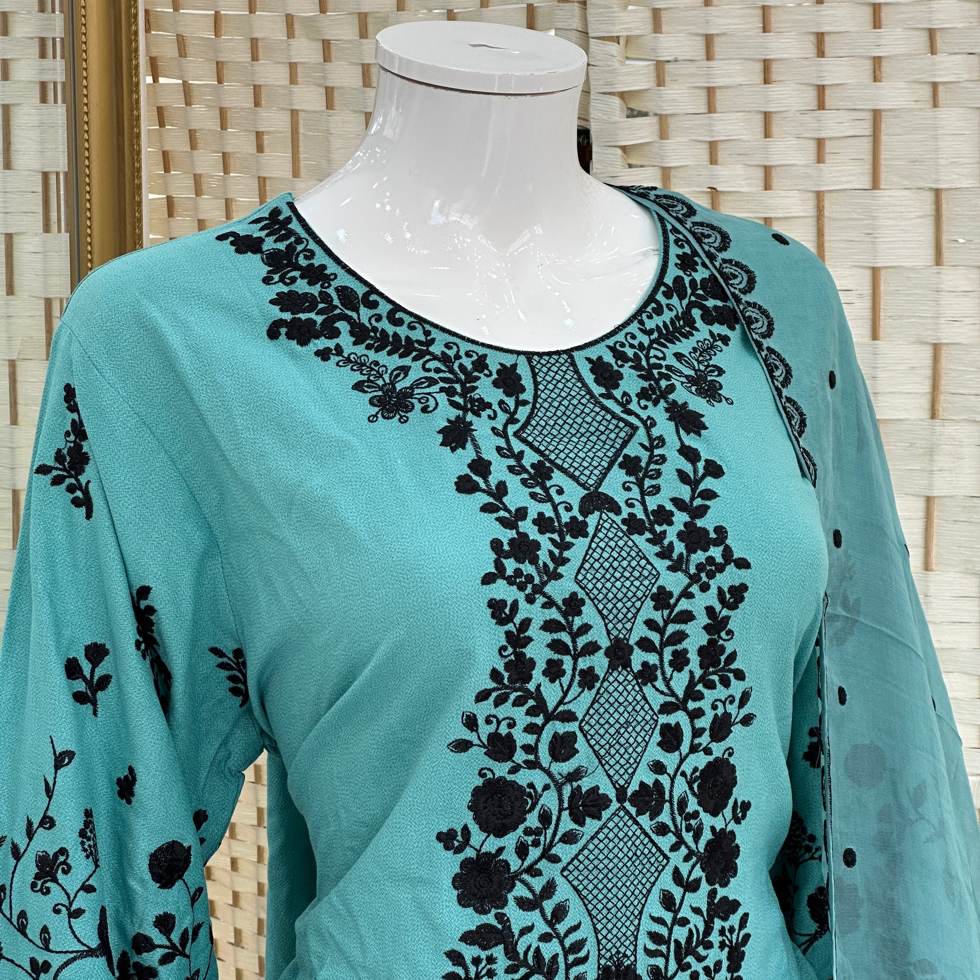 - Kameez has a classic straight cut and a modest boat neck, making it suitable for all occasions.