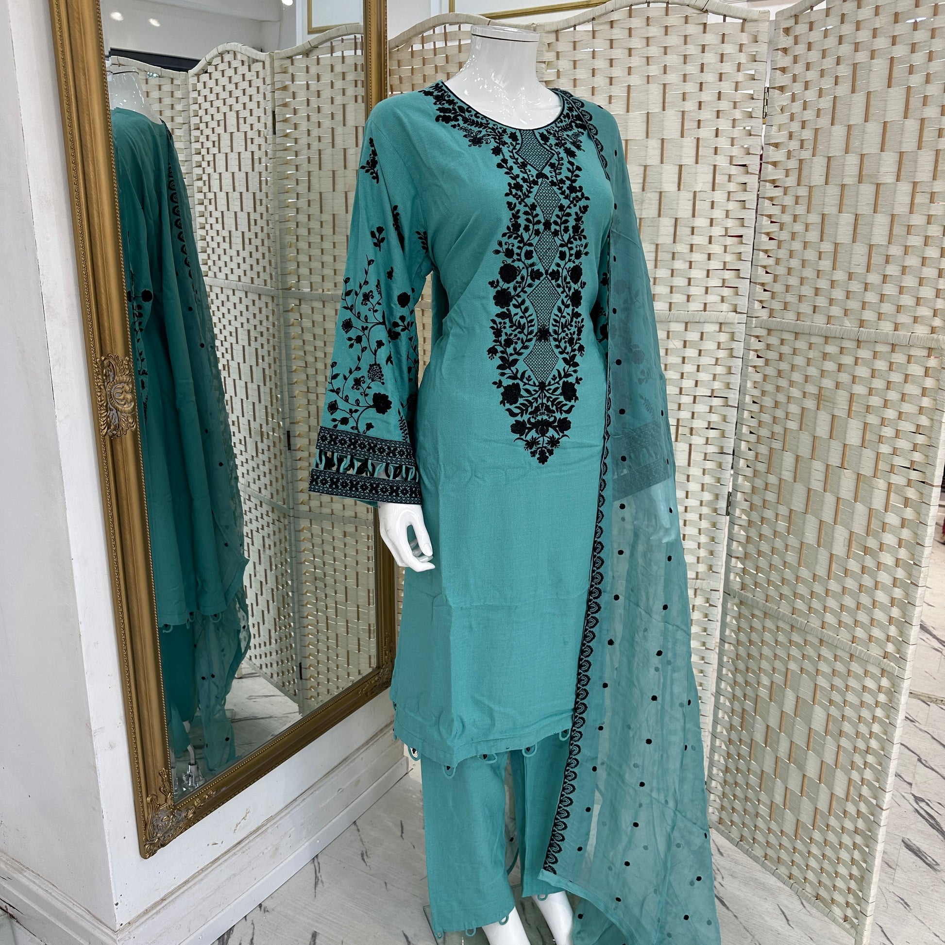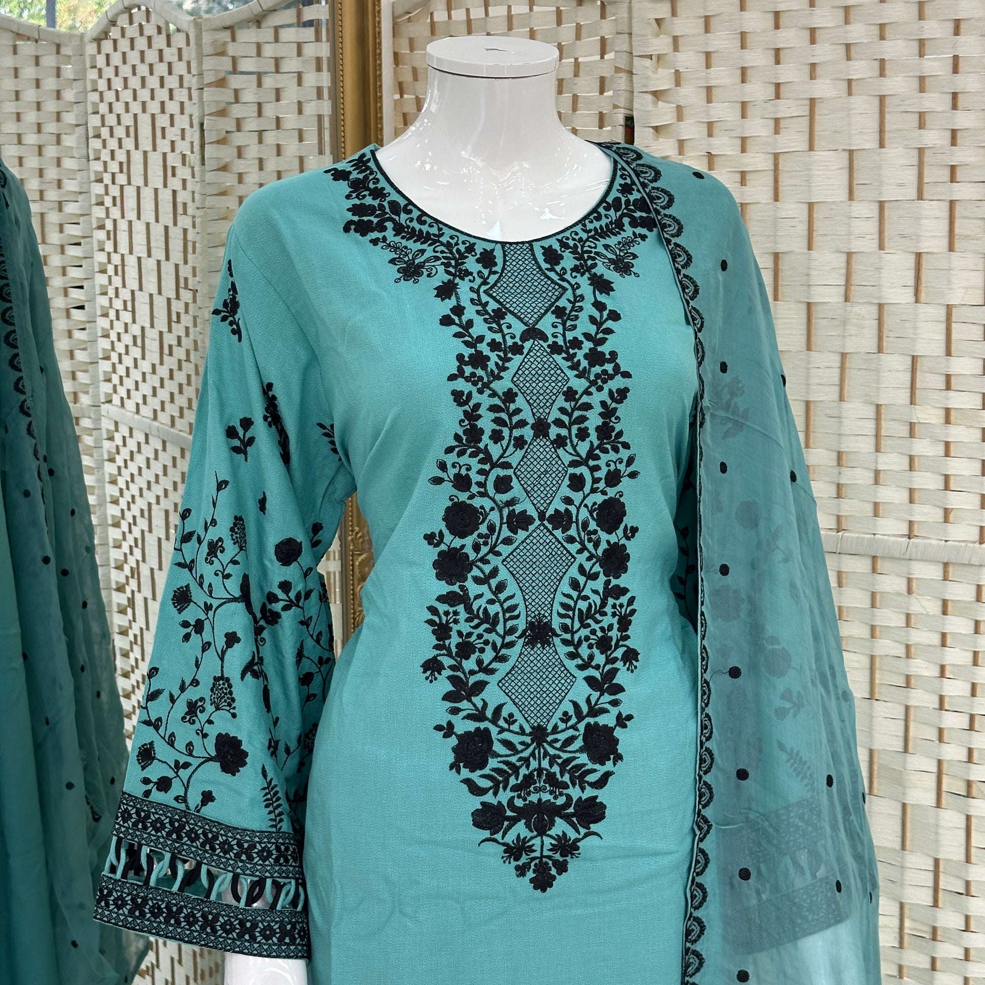 - Chiffon dupatta with its matching embroidered is a perfect complement for the kameez.